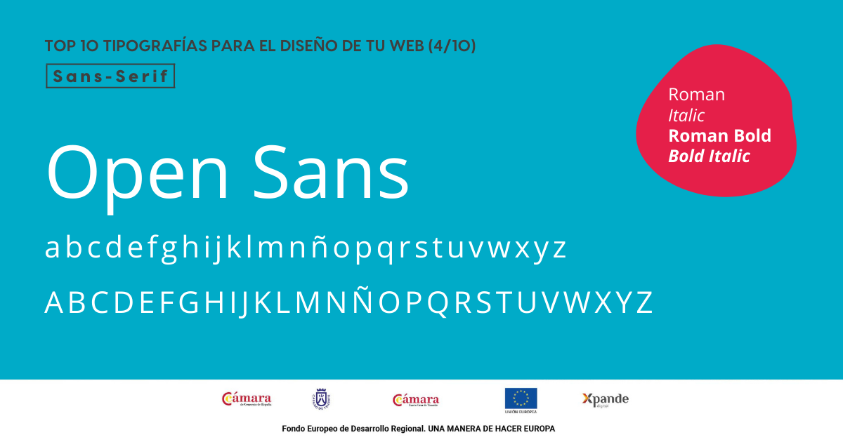Open Sans es una tipografía humanista sans-serif ampliamente utilizada en el diseño web debido a su alta legibilidad en pantallas y tamaños pequeños. Es una fuente disponible en Google Fonts que nunca pasará de moda por su versatilidad.